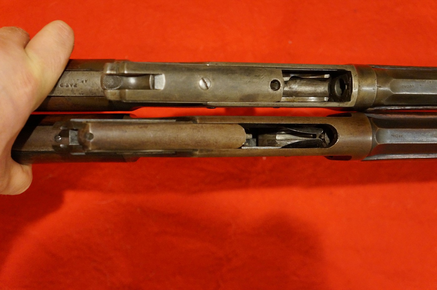 Очень странное и трепетное чувство. Как будто руками распаковываешь историю. Копия моего Винчестера 1894 по сравнению с этим динозавром - как Кадиллак СТС рядом с Шевроле Бел Эйр.