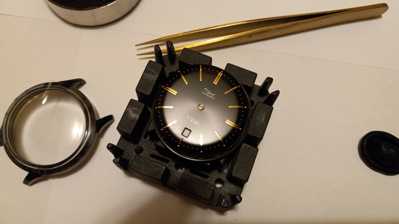Внутри корпус, механизм Myiota 8315, весь набор стрелок, перчаток, протирок и вот этого вашего всего, чтобы собрать часы самому с минимумом потерь. Поскольку я уже имел дело с разными калибрами, то инструмент у меня имелся. Если вы решитесь на подобное, закажите инструмент в комплекте с часами.